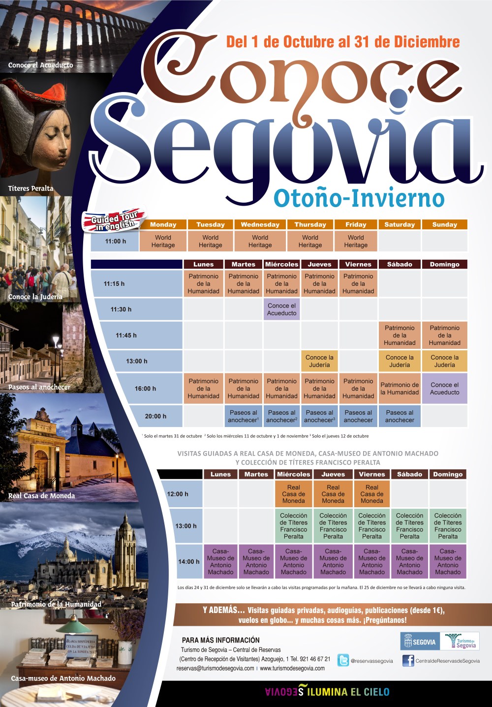 Si acabas de llegar a la ciudad, podrás elegir tu visita dentro de la programación diaria “Conoce Segovia” . El Área de Turismo de Segovia pone a tu disposición una amplia y variada oferta de visitas guiadas a lo largo de todo el año.