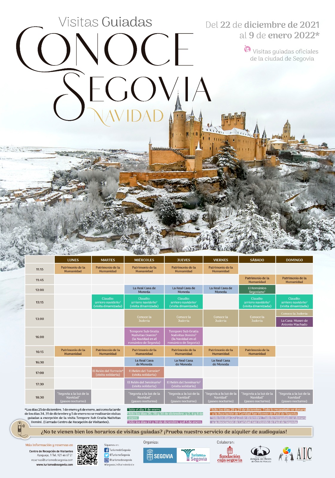 El resto de visitas incluidas en la campaña navideña forman parte de la oferta ya consolidada en la trayectoria de Turismo de Segovia y son: Patrimonio de la Humanidad, la Real Casa de Moneda, La Casa-Museo de Antonio Machado; o Conoce la judería. Además, se incluye una visita específica dedicada al románico segoviano.