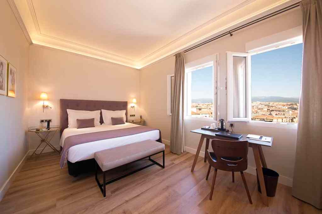 Ubicado en la vía principal del casco histórico, a tres minutos a pie de la catedral y del acueducto, el Hotel Real Segovia es el lugar ideal para disfrutar de la ciudad, descansar y recrearse con los atardeceres desde su azotea panorámica.